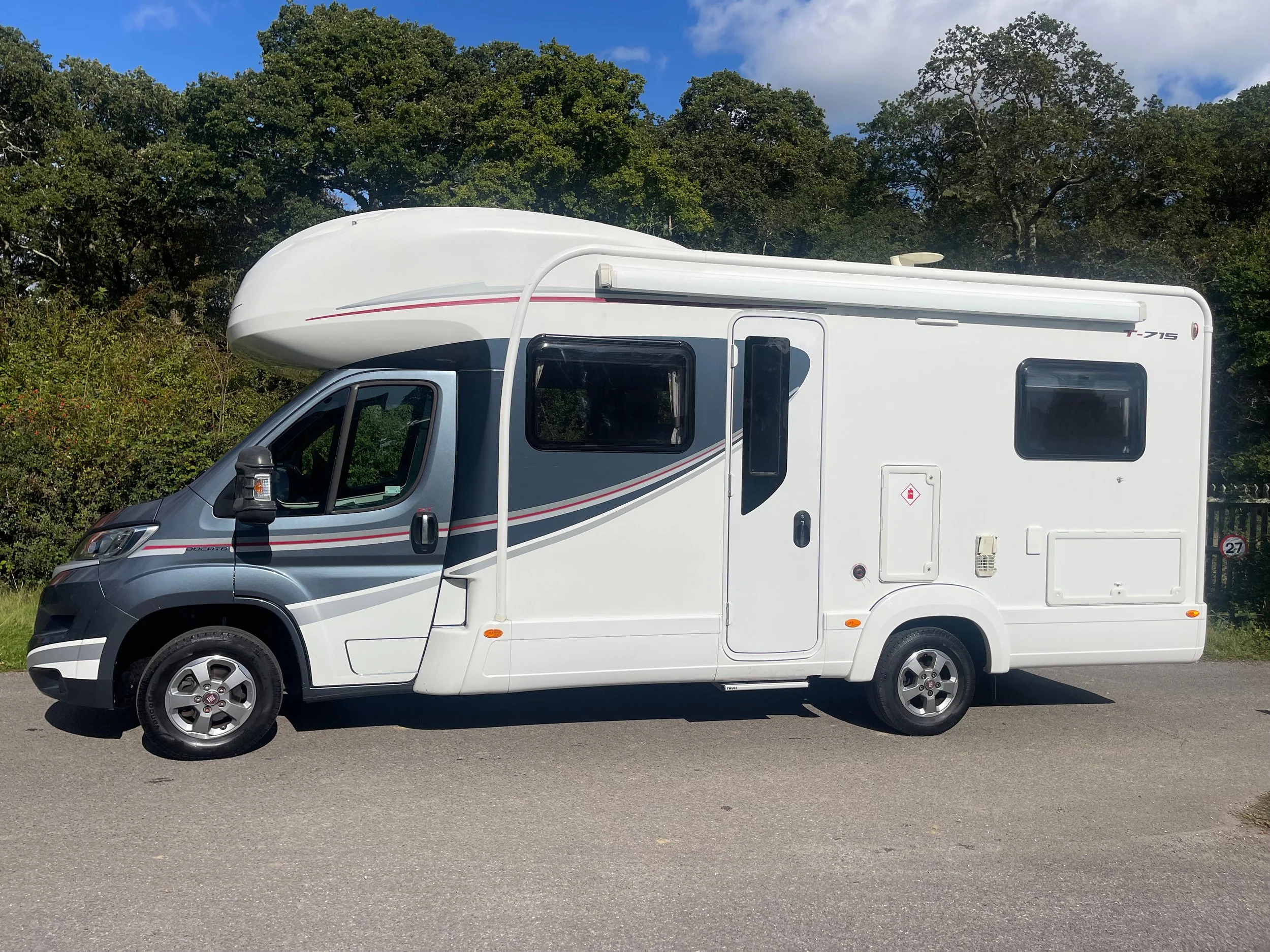Absolutely stunning Autotrail T-715 GT Tribute offering everything you need in a fantastic motorhome. Built on the very popular Fiat Ducato chassis with the 2.3 D 130hp engine and a max gross wieght of 3500kg this superb motorhome can be driven by any lisence holder with no restrictions. First registered in 2019 with only one previous owner and having covered only 14000 miles. Extremely high specification with Rare GT Pack, Tribute drivers pack and Tribute Lux pack making this motorhome extremely good value. 6 Speed manual. 6 berth. 4 travel seats. Fixed bed in end bedroom. Swivel front seats. Alloy wheels. windows canopy. Cab air con. Reversing Camera. Cruise control. Bike rack. Cabin blinds. Solar panel. TV and Ariel. Heating. Hot water. New self inflating awning available by separate negotiation. L=7.06 W=2.35 H=3.10. 3 months fully extendable warranty included. Located Coolham in West Sussex for viewing.